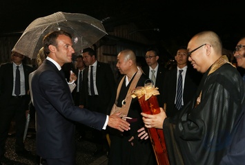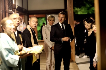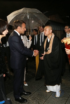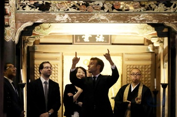 Macronowie w swiatyni Kodai-Ji