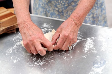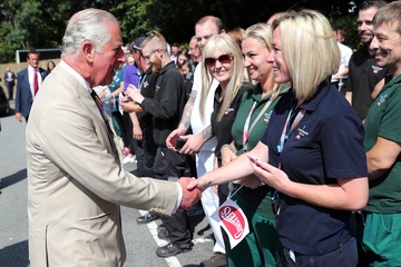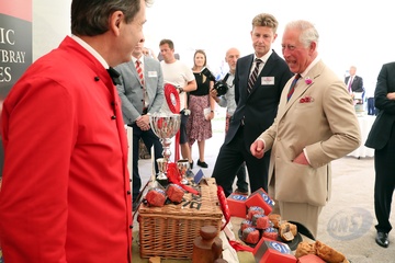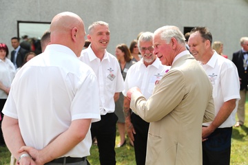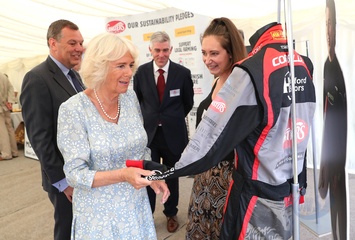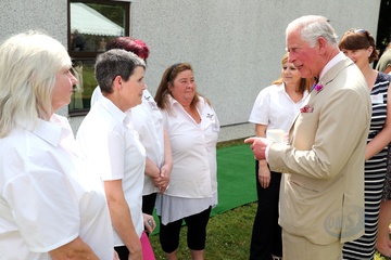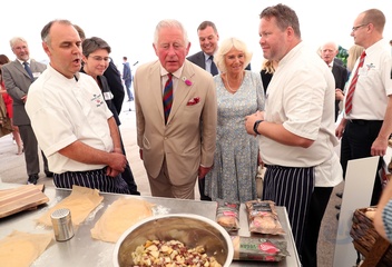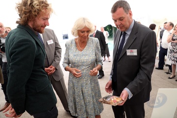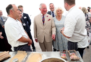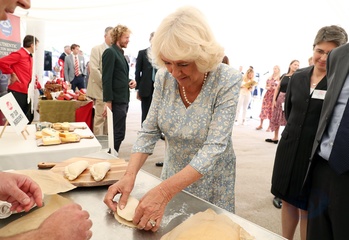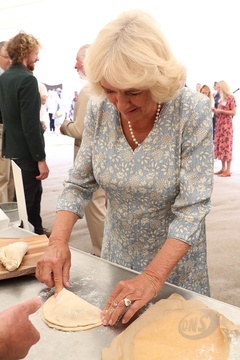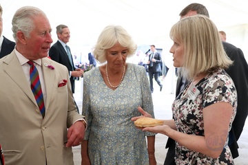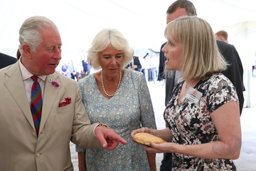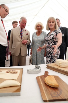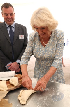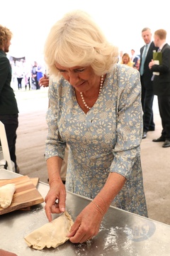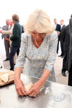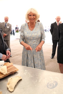 Ksiezna Camilla lepi pieroga, przyjecie z okazji 50-lecia piekarni Ginsters