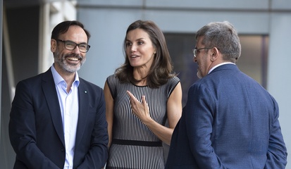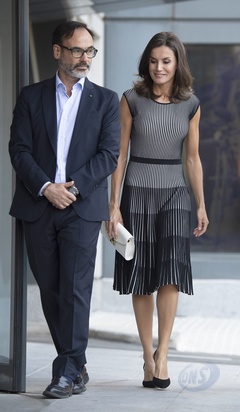 Krolowa Letizia w sukience w paseczki, wizyta w Fundacji Fundeu BBVA