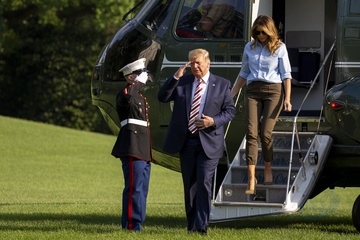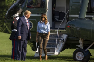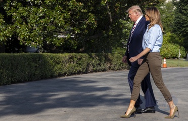 Donald Trump i Melania trzymaja sie za rece w domu do Bialego Domu