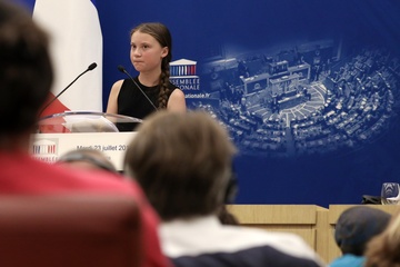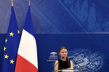 Greta Thunberg przemawia podczas Zgromadzenia Narodowego w Paryzu