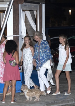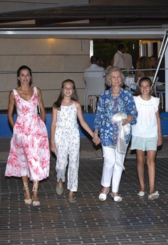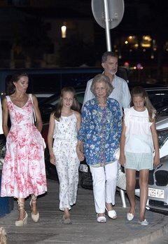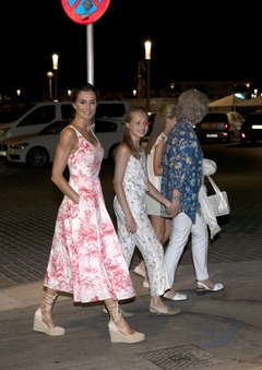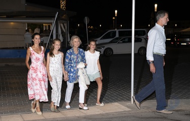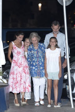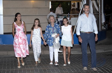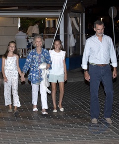Krol Filip z zona, corkami i matka ida do restauracji Ola de Mar