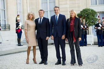 Brigitte Macron, Emmanuel Macron, Kyriakos Mitsotakis, Mareva Grabowski