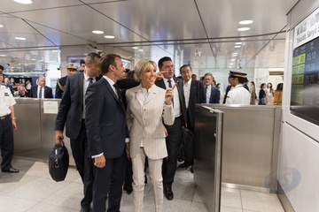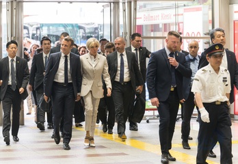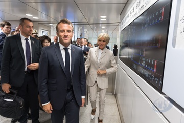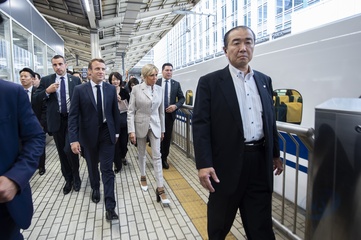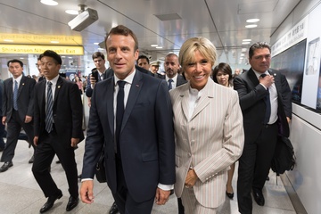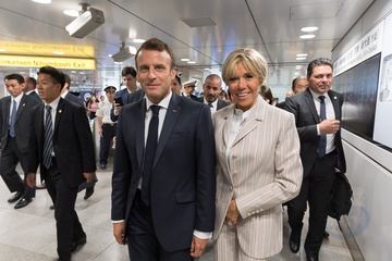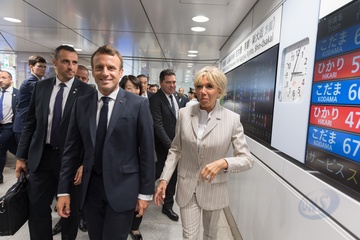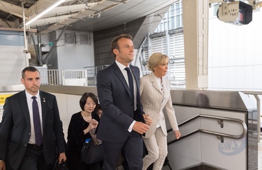 Macronowie na Dworcu w Tokyo