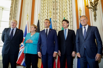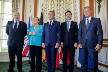 Boris Johnson, Angela Merkel, Emmanuel Macron, Giuseppe Conte, Donald Tusk