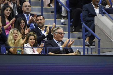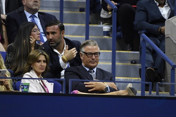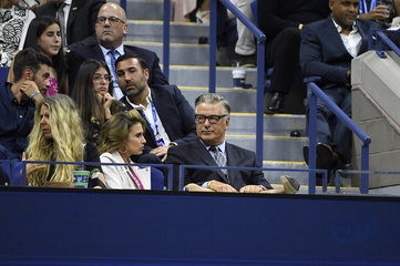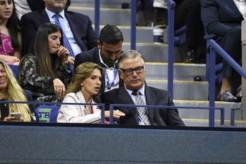 Alec Baldwin z zona Hilaria Baldwin na US Open