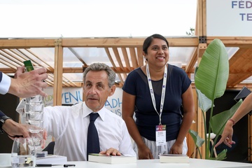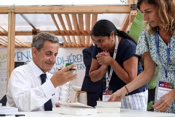 Nicolas Sarkozy podpisuje swoja ksiazke Passions