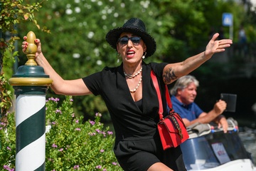 Wenecja - Rossy de Palma wdzieczy sie do fotoreporterow