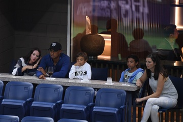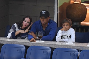 Tiger Woods z dziewczyna i dziecmi na turnieju tenisowym