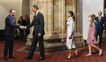 Hiszpanska para krolewska z corkami podczas ceremonii Princess of Asturias 2019