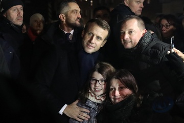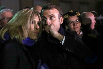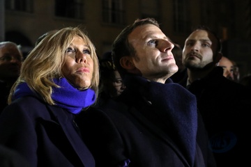 Macronowie ogladaja spektakl swiatla na katedrze w Amiens