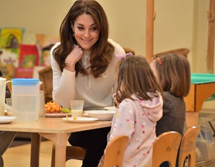 Ksiezna Kate z dziecmi z Stockwell Gardens Nursery & Pre-school