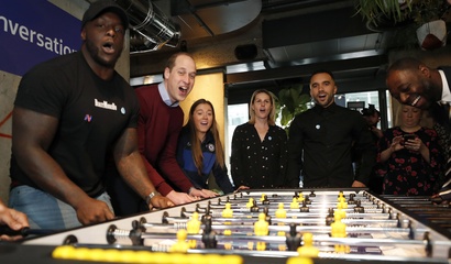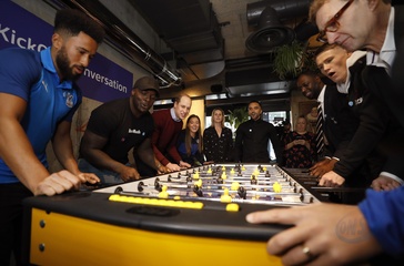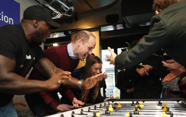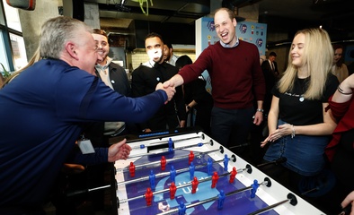 Ksiaze William spontanicznie kibicuje podczas gry w pilkarzyki