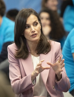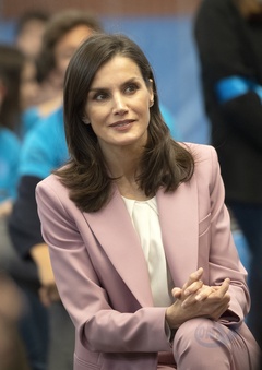 Krolowa Letizia w fioletowym garniturze na gali Princess of Girona 2020 Foundation Award