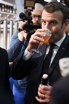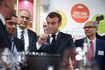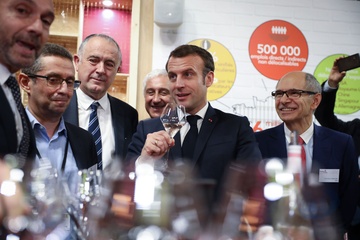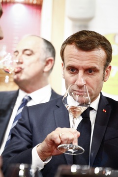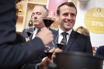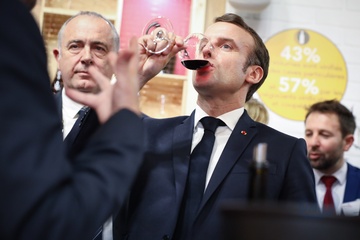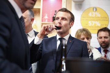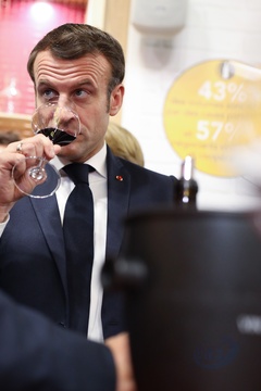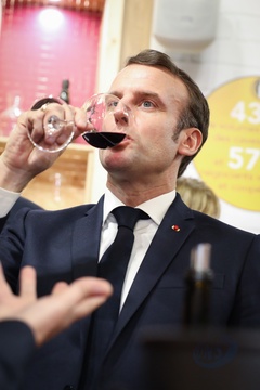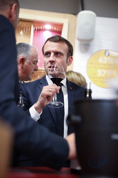 Emmanuel Macron degustuje alkohole na rolniczych targach