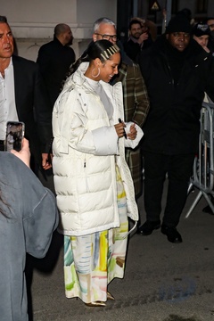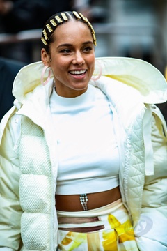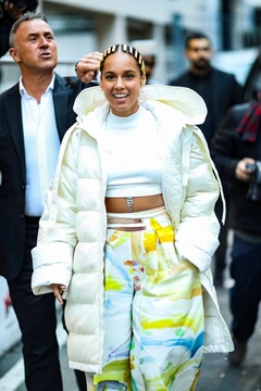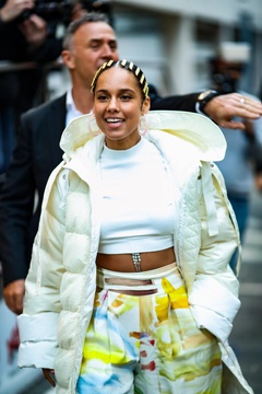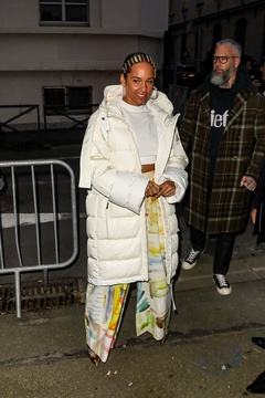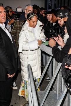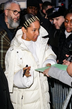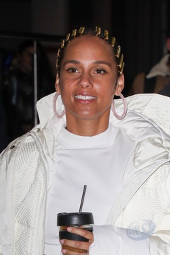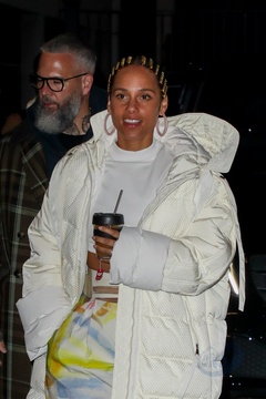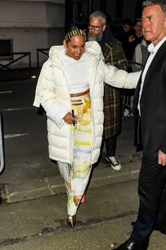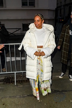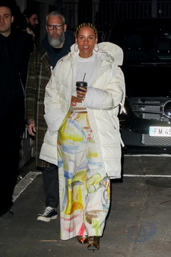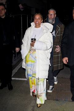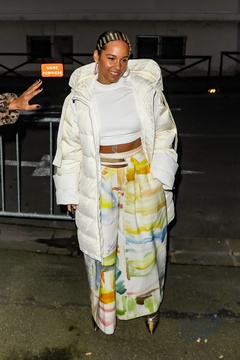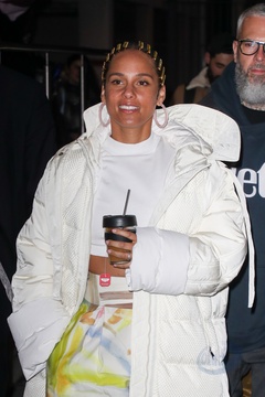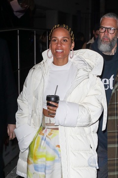 Alicia Keys w bialej, puchowej kurtce i w kolorowych spodniach wraca z NRJ Radio