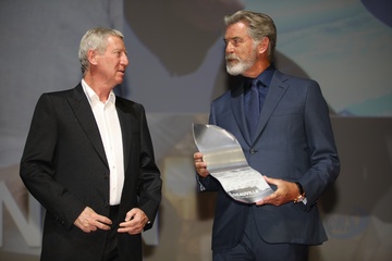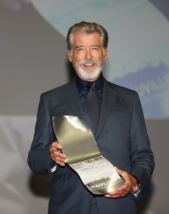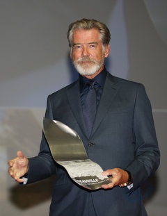 Pierce Brosnan ze statuetka na otwarciu Deauville American Cinema Festival