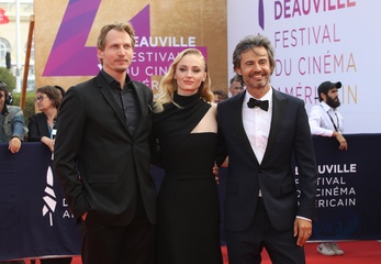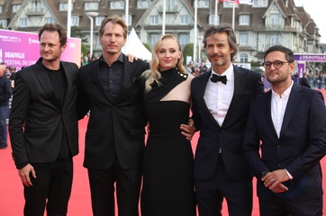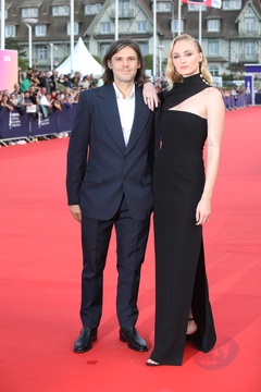 Sophie Turner w czarnej sukni na czerwonym dywanie na Festiwalu w Deauville