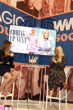 Tori Spelling w kwiecistej sukience podczas wywiadu