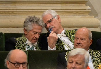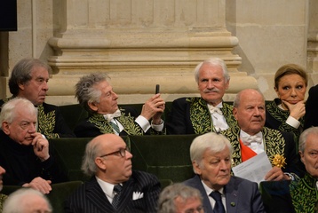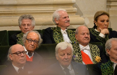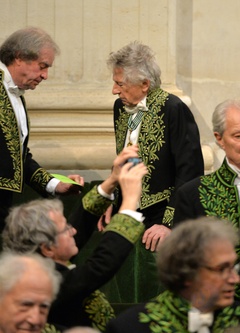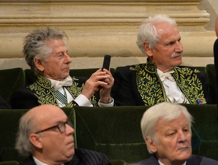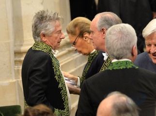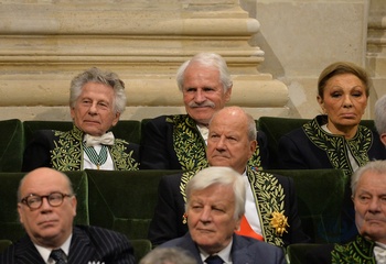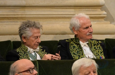 Roman Polanski podczas ceremonii instalacji F. Mitterranda w Akademii Sztuk Pieknych w Paryzu