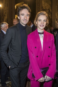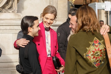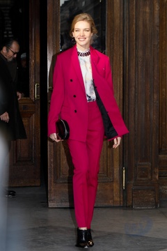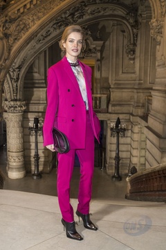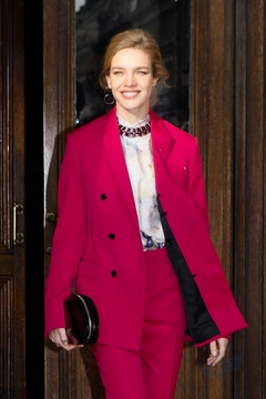 Natalia Viodanova w rozowym garniturze na pokazie Berluti