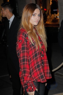 Thylane Blondeau w koszuli w czerwona krate na pokazie Ralph Lauren