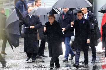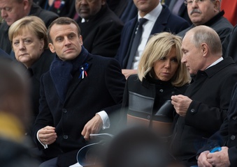 Emmanuel Macron, Brigitte Macron, Angela Merkel, Vladimir Putin