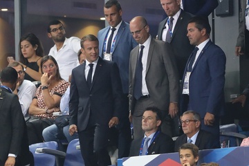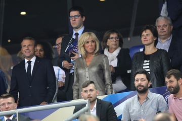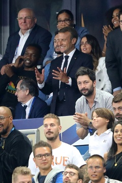 Steve Mandanda, Hugo Lloris z zona Marine, Noel Le Graet, Emmanuel Macron, Matt Pokora