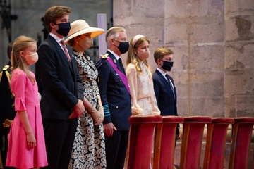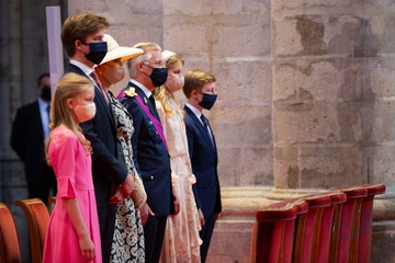 Belgijska rodzina krolewska w maseczkach podczas mszy