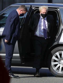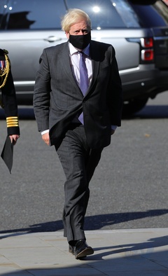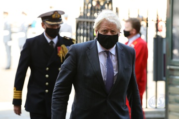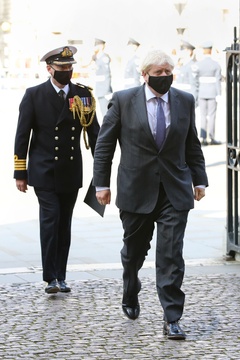 Boris Johnson w maseczce podczas obchodow 80. rocznicy Battle of Britain