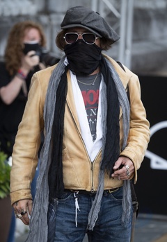 Johnny Depp skrywa twarz za maseczka i okularami, Festiwal w San Sebastian