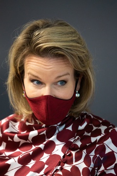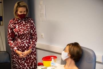 krolowa Matylda rozmawia z wolontariuszką, uczestniczaca w badaniu szczepionki przeciwko koronawirusowi