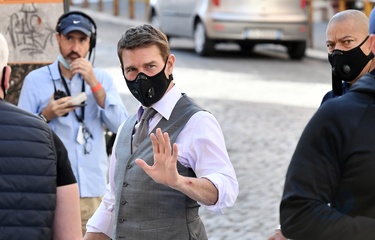 Tom Cruise w maseczce na planie ' Mission Impossible 7'