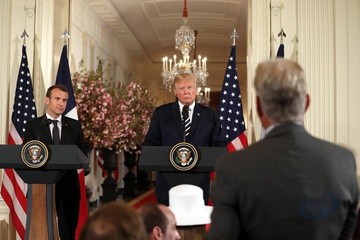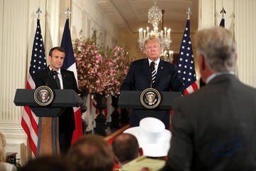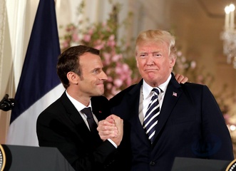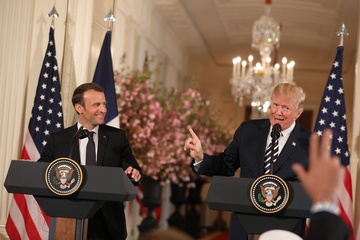 Macron i Trump - wspolna konferencja i przyjacielskie gesty
