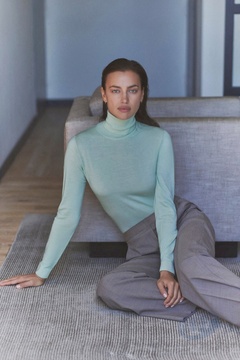 Irina Shayk w cieplych kaszmirowych swetrach Falconeri