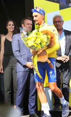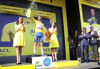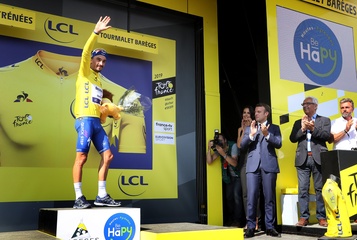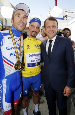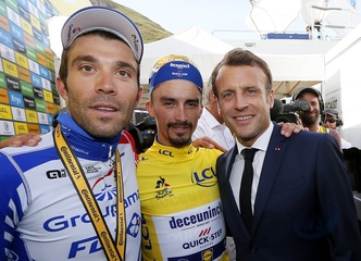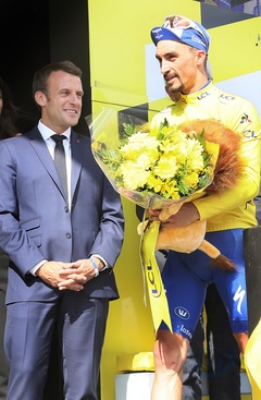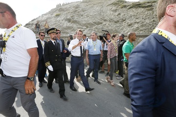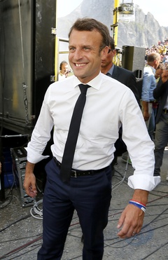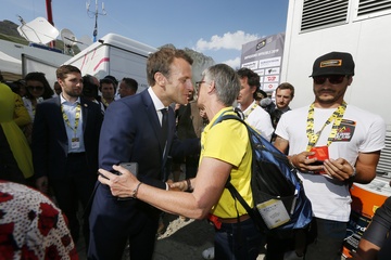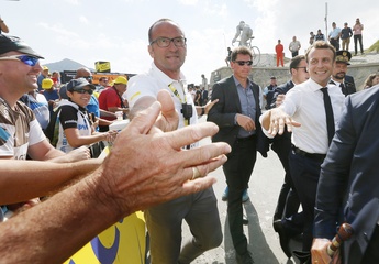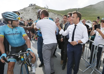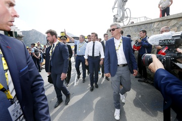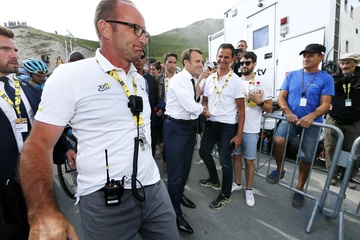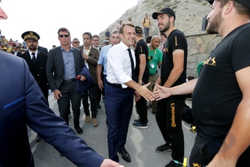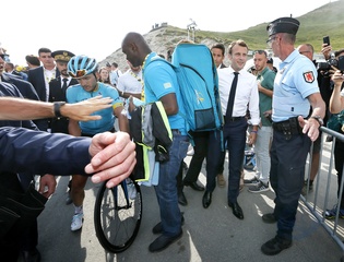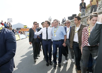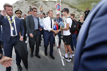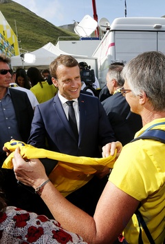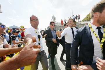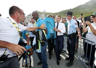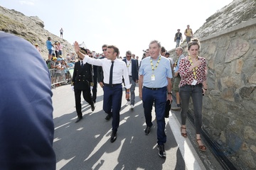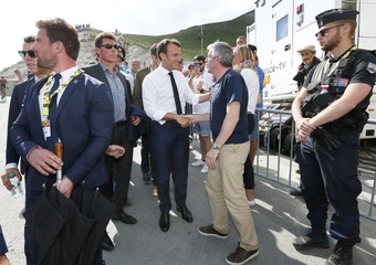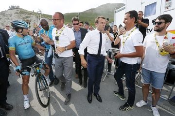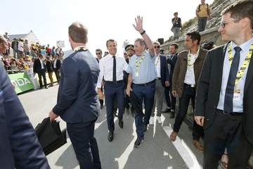 Emmanuel Macron w Tourmalet podczas Tour de France 2019