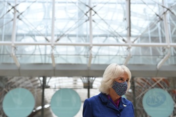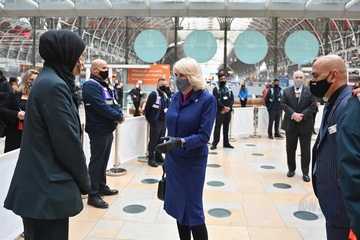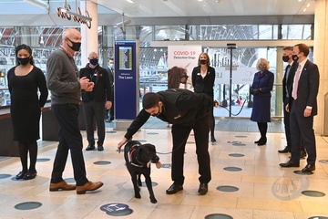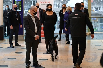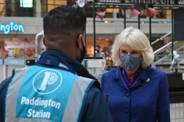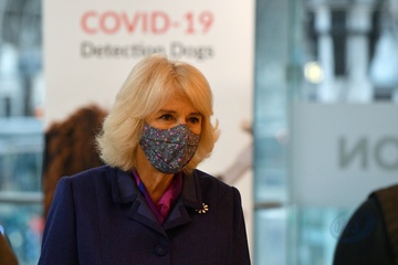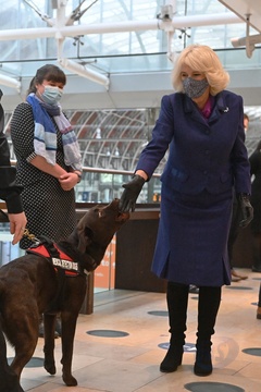 Ksiezna Camilla na pokazie Medical Detection Dogs, organizacji ktora szkoli psy do wykrywania zapachu ludzkiej choroby