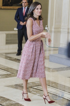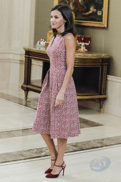 Krolowa Letizia we wzorzastej sukience