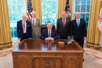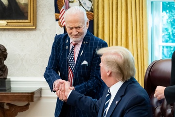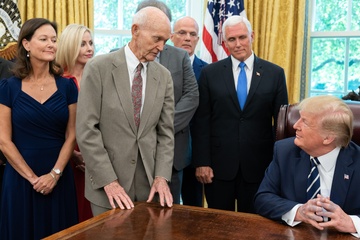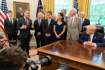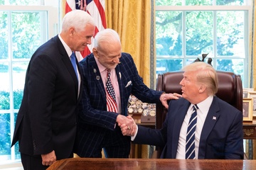 Buzz Aldrin, Michael Collins, Donald Trump, Jim Bridenstine, Mike Pence