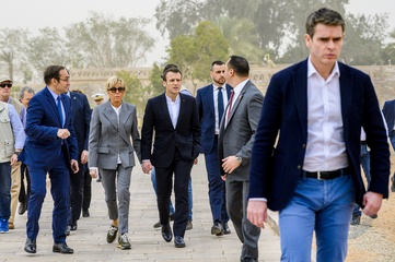 Emmanuel Macron, Brigitte Macron, Franck Riester, Jean-Yves Le Drian, Khaled El-Enany