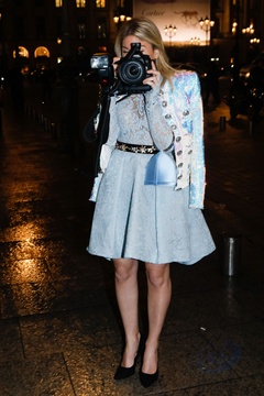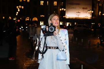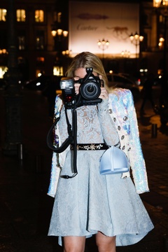 Hofit Golan oglada aparat fotograficzny od jednego z reporterow