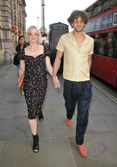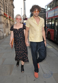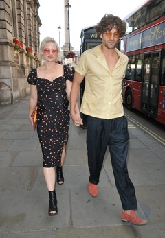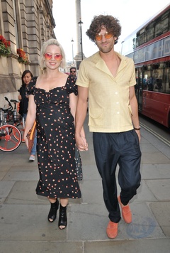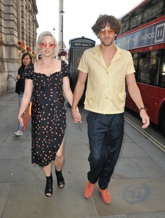 Kimberly Wyatt z brzuszkiem i Max Rogers w drodze na Equus play press night