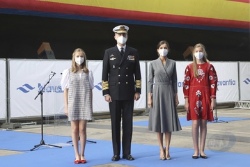Krolowa Letizia i krol Filip z corkami uczestnicza w wodowaniu okretu podwodnego S-81
