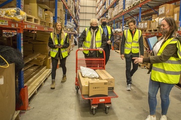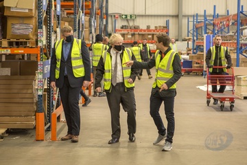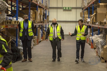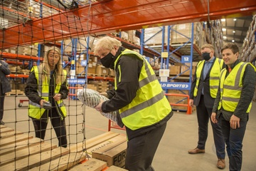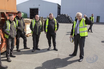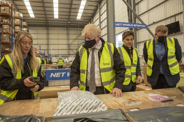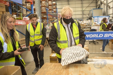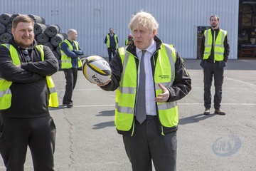 Boris Johnson w odblaskowej kamizelce podczas wizyty w Walii
