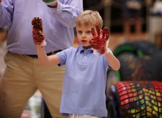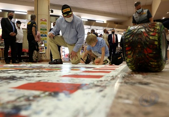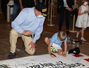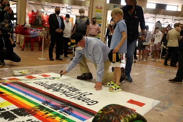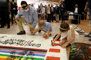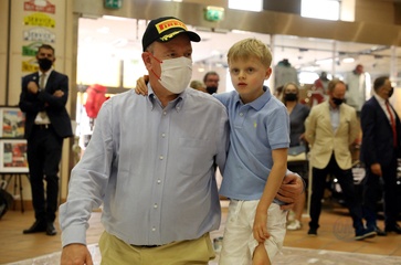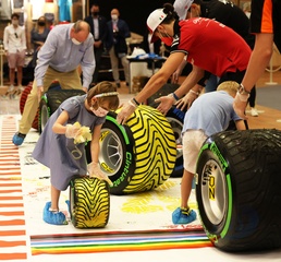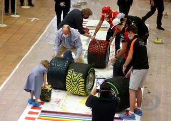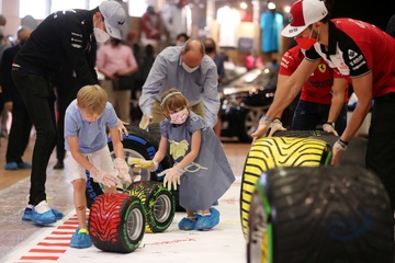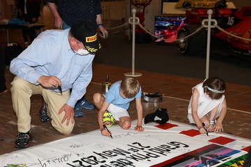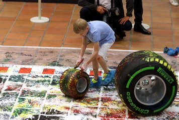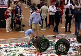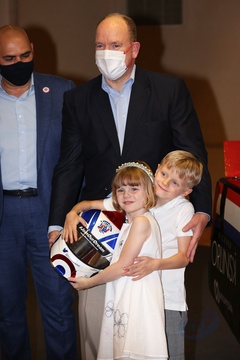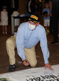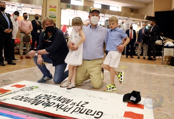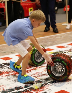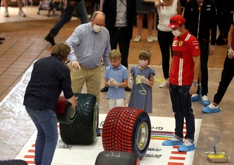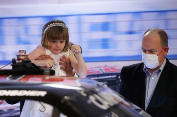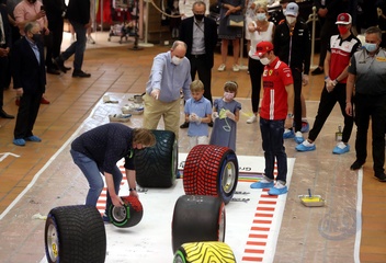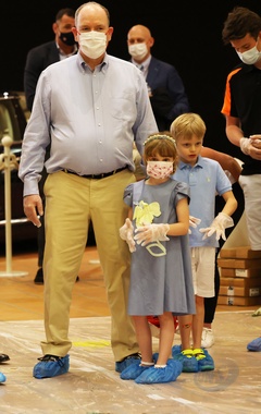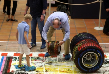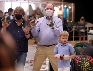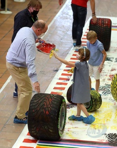 Ksiaze Albert z dziecmi tworza prace plastyczne na Grand Prix Monaco 2021