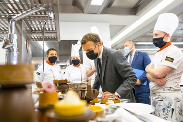 Emmanuel Macron w kuchni w liceum