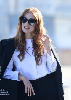 Jessica Chastain na photocall filmu The Eyes of Tammy Faye na Festiwalu w San Sebastian