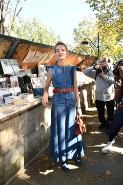 Natalia Vodianova w jeansowej sukience na pokazie Chloe