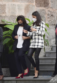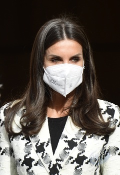 Krolowa Letizia w bialo czarnej marynarce w kratke
