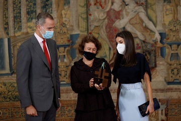 Filip i Letizia spotkali sie z czlonkami Instytutu Cervantesa w Palacu El Pardo